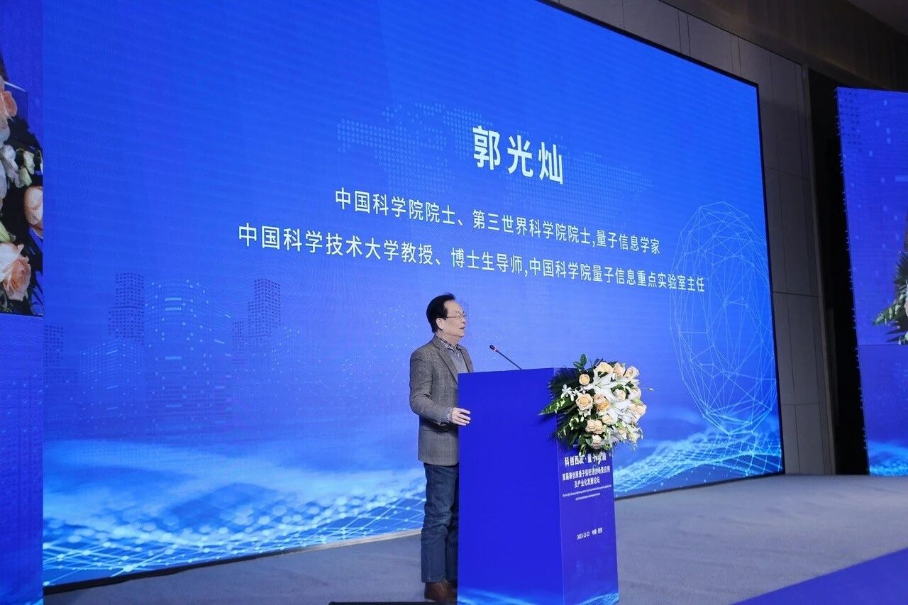 中国科学院院士、量子信息学家郭光灿上台发言并作主题报告。