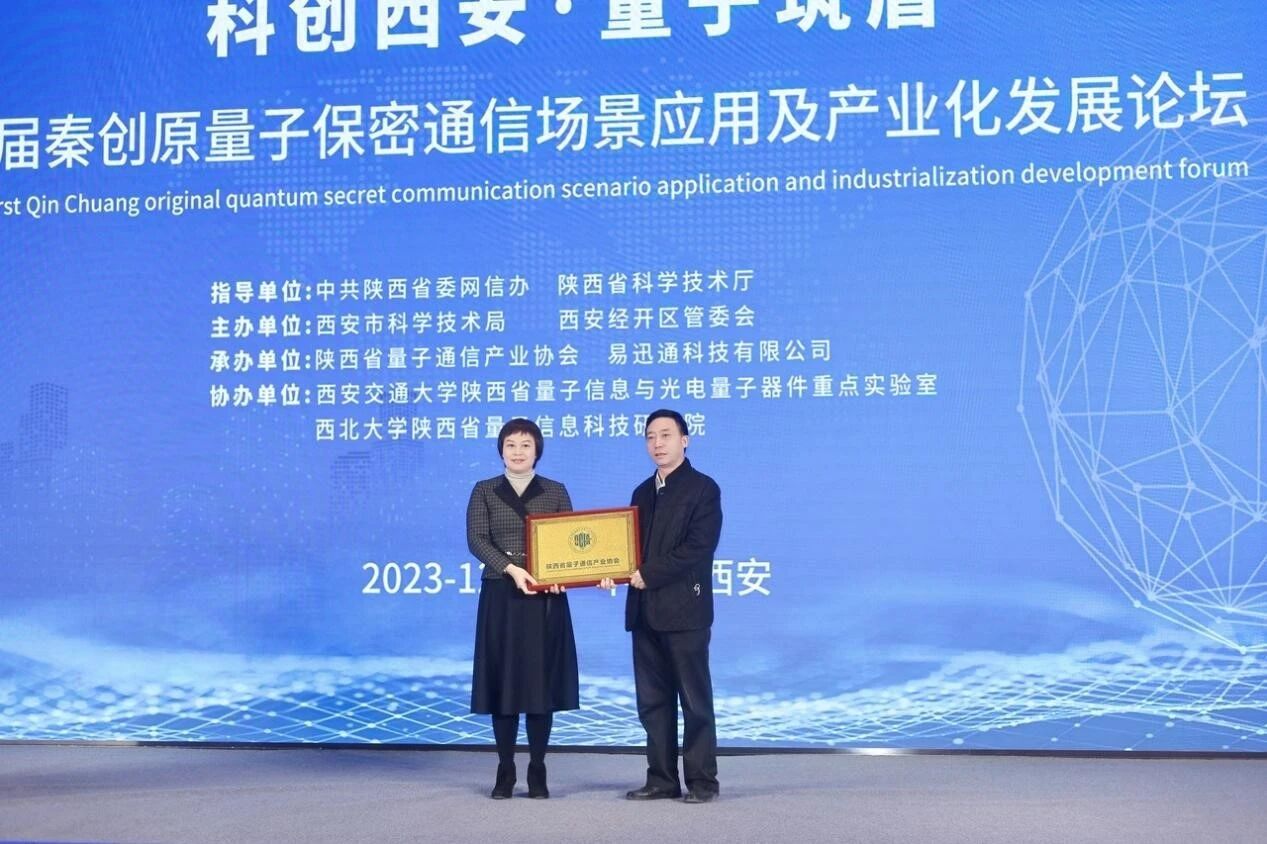 随后,省民政厅相关部门负责人向陕西省量子通信产业协会授牌。