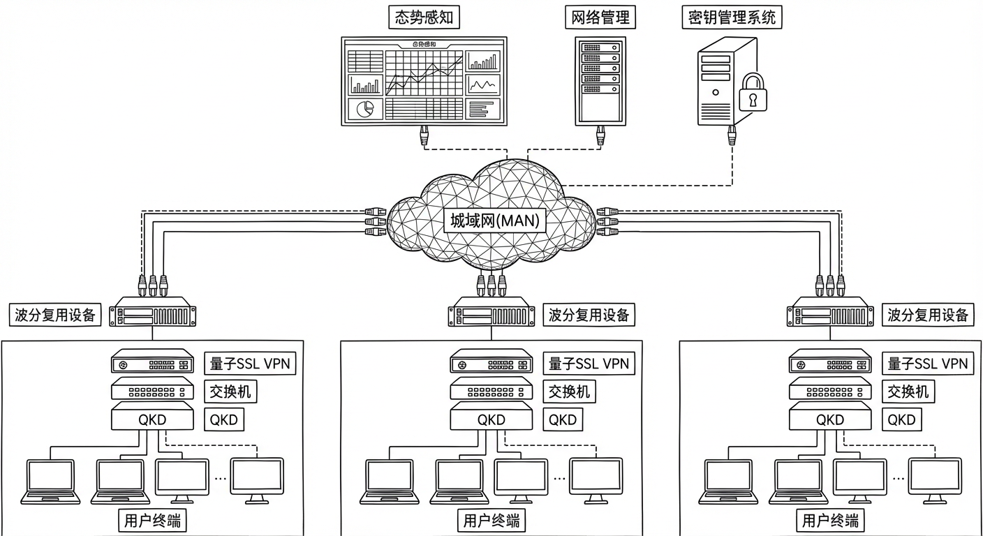 城域网作为城市信息化建设的核心枢纽,承担着连接各级政府机构、保障政务信息高效安全流通的重要职责。因此,构建安全可靠的城域网通信系统,已成为城市信息化建设进程中不可或缺的关键环节。而量子技术的创新应用,不仅满足了政务通信对安全性的极高要求,更推动政务信息安全迈入全新发展时代。
